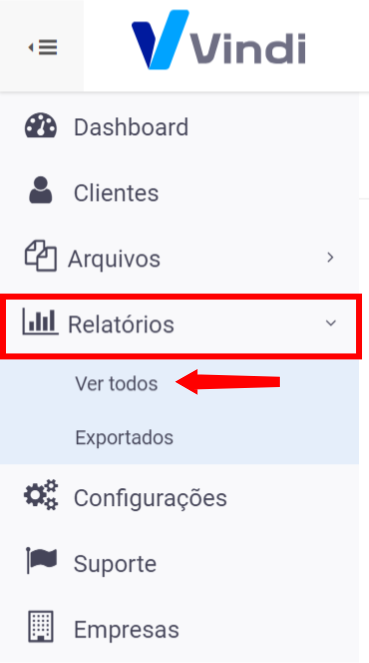 Para acessar este relatório, no menu lateral clique em "Relatórios" e "Ver todos":