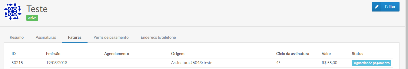 ID da Fatura: o ID da fatura pode ser localizado no campo detalhes: