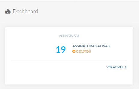 Por esse relatório você consegue ter um controle de novas assinaturas, assinaturas canceladas e assinaturas a vencer. O acesso a ele pode ser feito por meio da Dashboard. No quadro - Assinaturas - clique no link "ver ativas", e através do relatório Assinaturas: