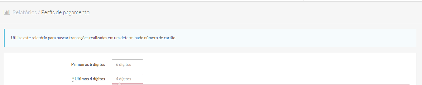Por meio do relatório de Perfis de Pagamento, você poderá localizar clientes pelo número do cartão cadastrado ou até mesmo identificar quais deram chargeback.