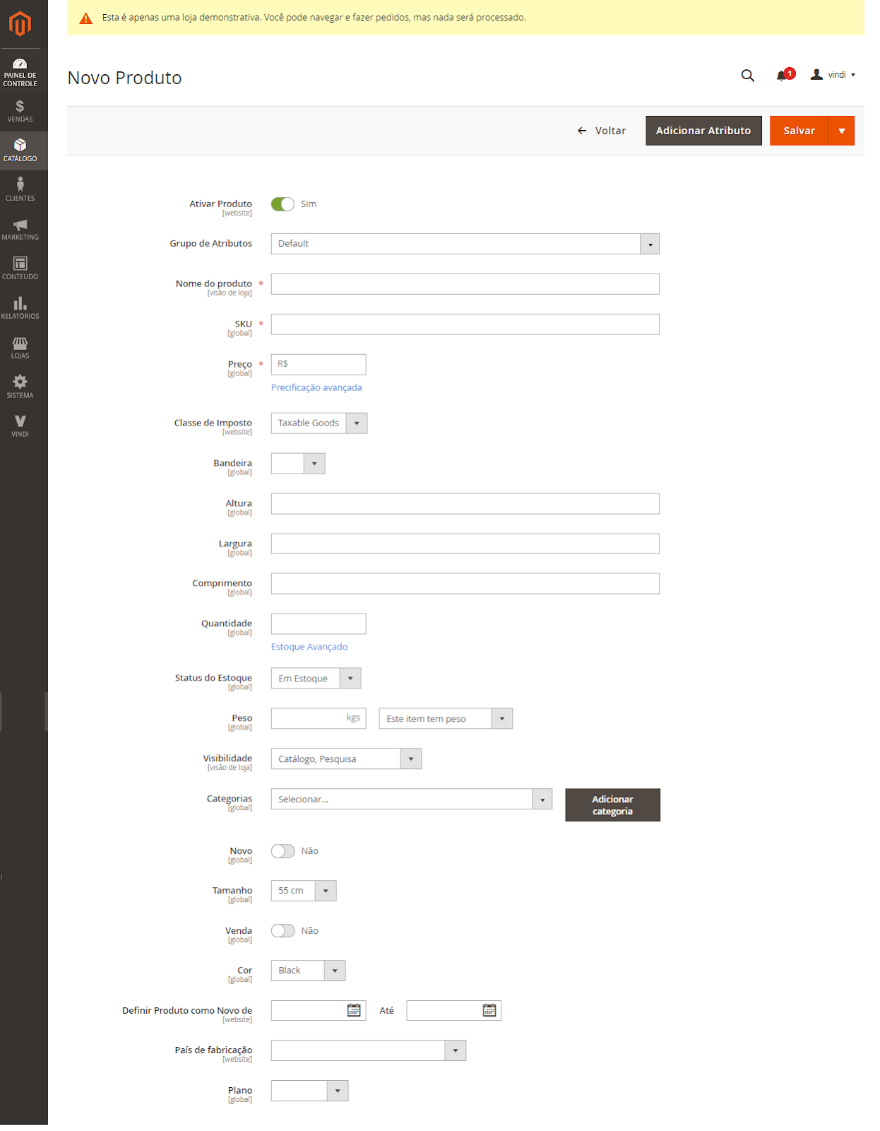 Os valores inseridos nestes campos são os que aparecerão na sua loja: