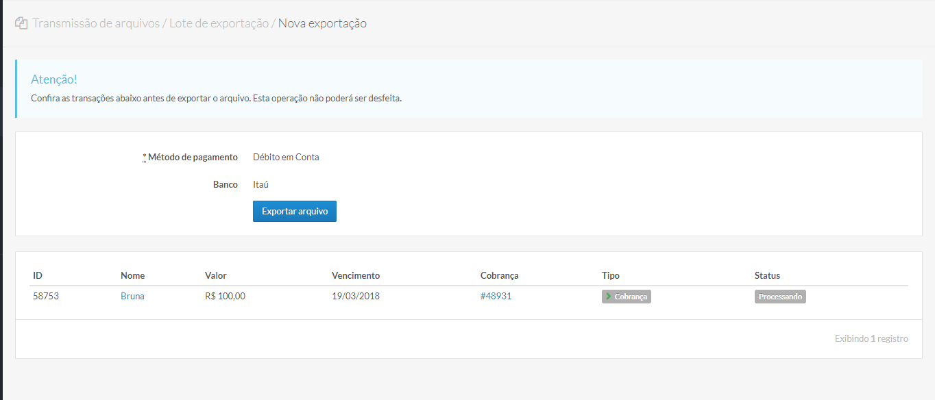 A geração da remessa é importante para informar ao seu banco e aos clientes que você quer que seja realizado o débito em conta. Esse procedimento também comunica ao banco os boletos a serem registrados.