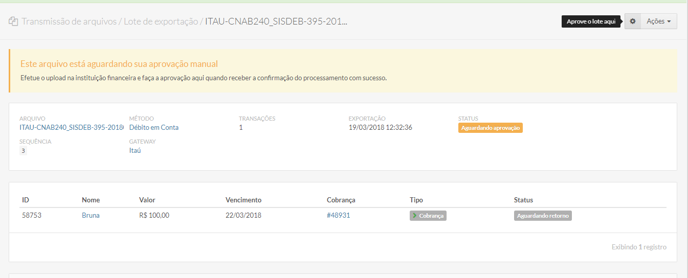 Aprovar: aprovar o lote para envio dos boletos aos seus clientes.